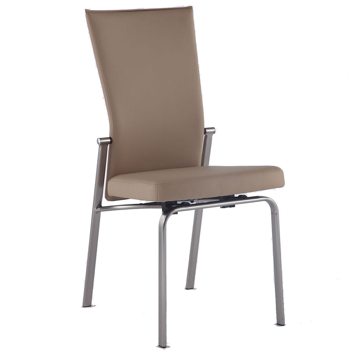 Molly Motion Back Dining Chair In Beige Leatherette Brushed Nickel Set Of 2 By Chintaly Imports